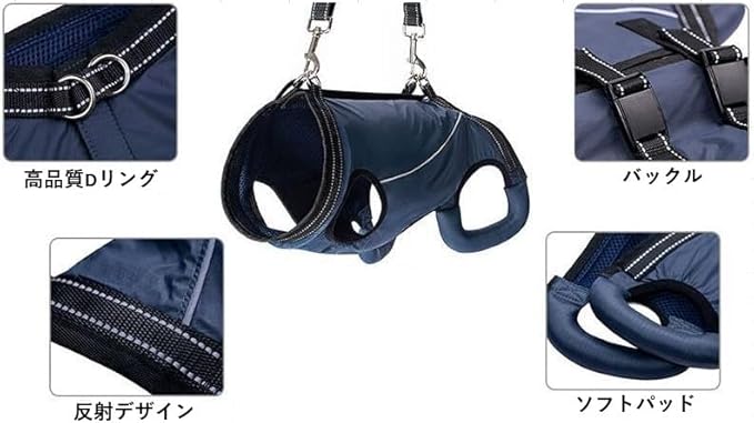 【歩行補助】犬ハーネスは高齢の犬、手術からの回復、または関節の損傷、関節炎、リウマチなどの犬のために設計されており、歩行、階段の上り下り、車の乗り降りを支援するときに前後の脚をサポートします。反射するデザインで、夜間でも安全に使用できます。