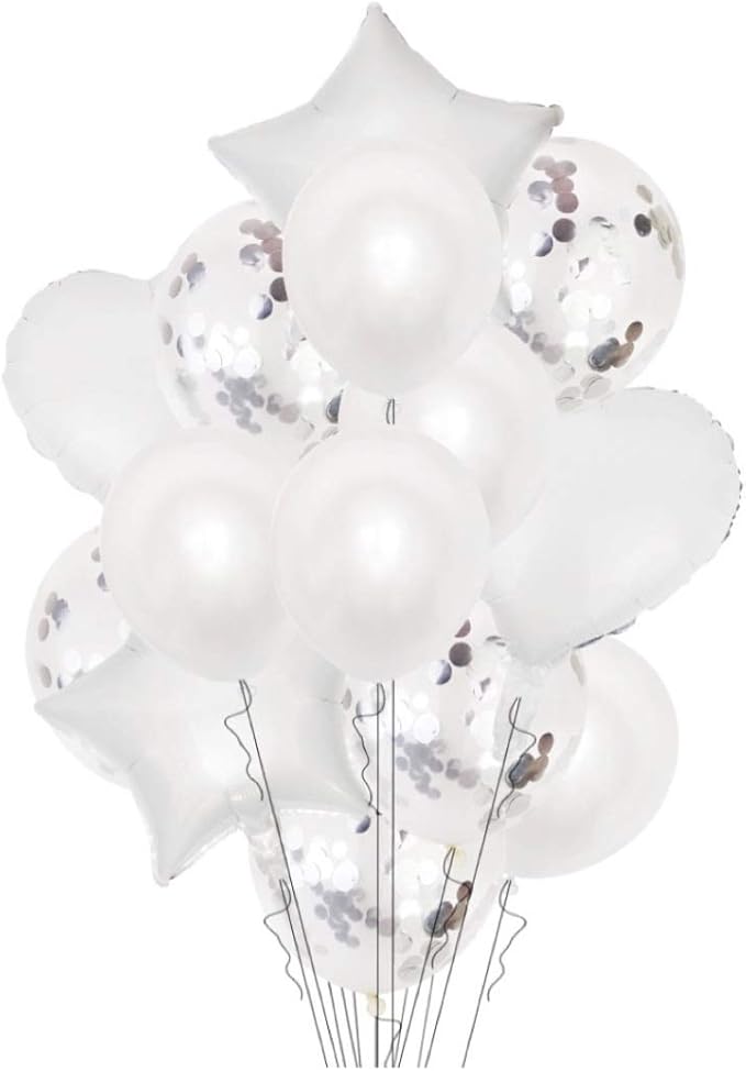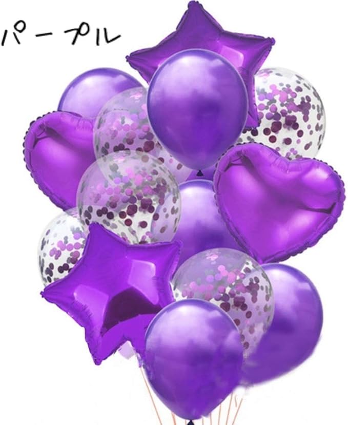 【セット内容】4種類ミックス:18寸 ハート アルミバルーン 2個、18寸 星 アルミバルーン 2個、12寸 紙吹雪入り風船 5個、12寸 風船 5個、紐 1巻 2種類ミックス:12寸 紙吹雪入り風船 5個、12寸 風船 5個、紐 1巻