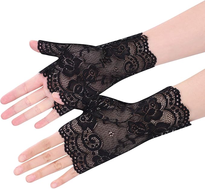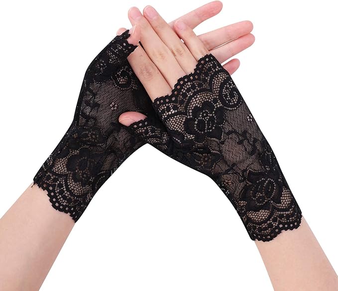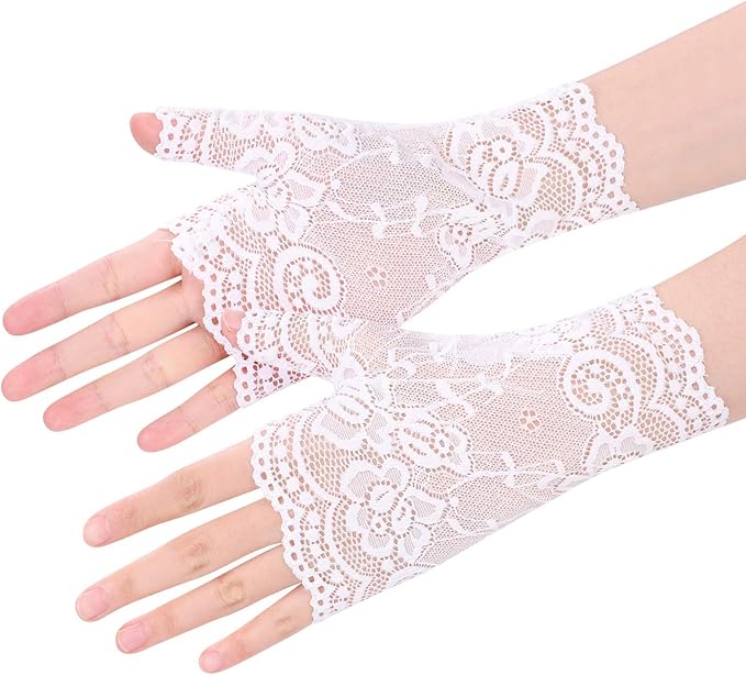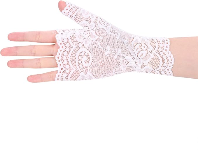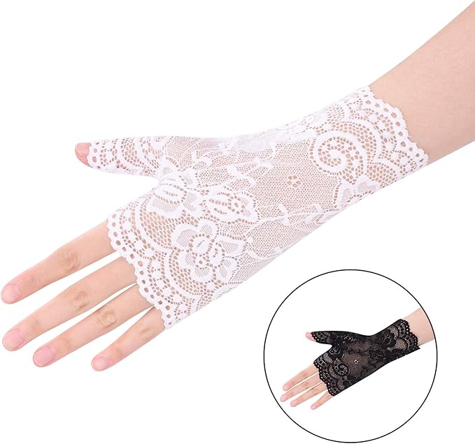 [HADWAO] レディース手袋 指出しグローブ レース手袋 黒/白 2点入り 薄手 通気 夏用 ハーフ手袋 カット スマホ対応 ショートグローブ ウェディング 結婚式 披露宴 二次会 パーティー 撮影用 発表会 ドレス手袋 ホワイトとブラック | oioioichan