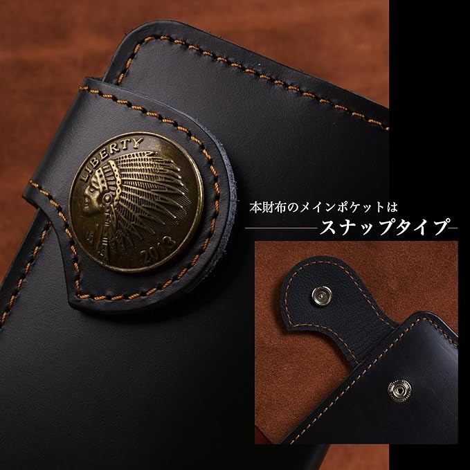 [ASIAN ZACCA] バイカーズウォレット 長財布 ライダースウォレット レザーウォレット 二つ折り 財布 メンズ 本革 ヴィンテージ 革財布 牛革 メンズ長財布 ロングウォレット 長サイフ アメカジ コンチョインディアン ドクロ イーグル 男性 プレゼント おしゃれ 誕生日プレゼント ogl0038 (コンチョインディアン) | oioioichan