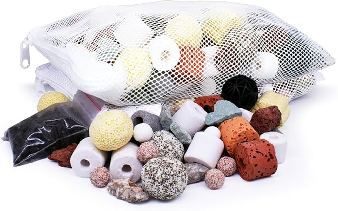 【12種類オールインワン】麦飯石、火山岩、珊瑚、活性炭、バイオボール、セラミックリング等、様々な効果が期待できる12種類のろ材を1パックにまとめました!