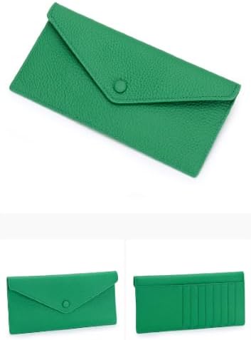 【取寄】長財布 カードホルダー ロングウォレット 薄型 財布 封筒型 本革 牛革 レザー レディース ファスナー 柔らかい 大容量 コンパクト お財布 スリム 薄い お札入れ カード 多収納 多機能 シンプル 無地 使いやすい 大人 かわいい 全8色 (グリーン) | oioioichan