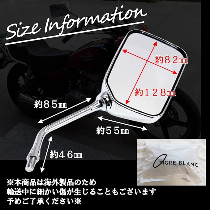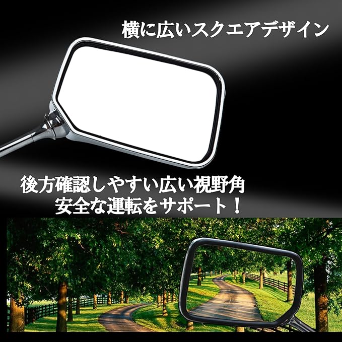 バイク用スクエアミラー左右セットになります。後方確認がしやすく、車間距離もつかみやすい。