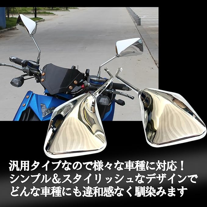 汎用性の高いネジ規格M10(10mm)を採用し鏡の取付強度を高くすることで、振動の多いバイクでもミラーがぶれにくい仕様になっております。 ※ネジサイズが合わない場合は変換ネジをご使用下さい。