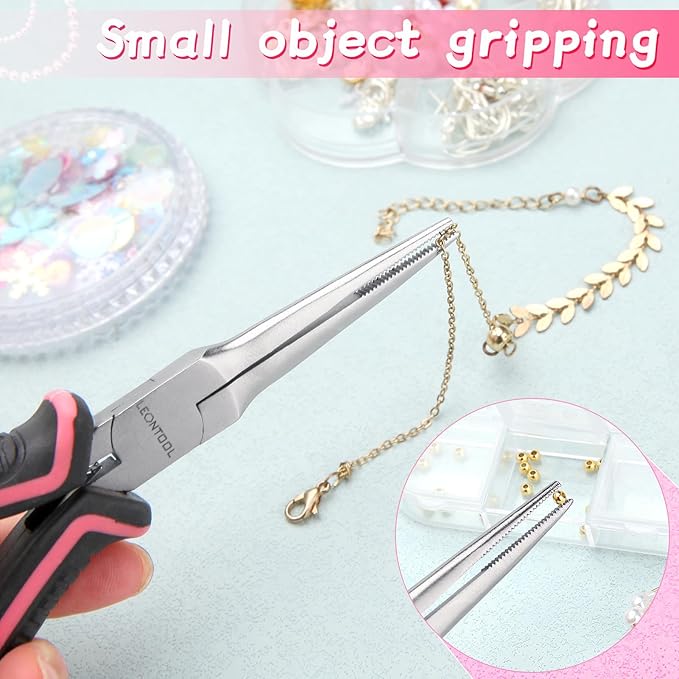 LEONTOOL ミニ 先細ラジオペンチ ピンセットプライヤー 極細 ニードルノーズプライヤー マイクロ リードペンチ 針はずしプライヤー ストレートタイプ バネ付 ギザ付 鍛造 高炭素鋼 TPR グリップ 小型 軽量 全長 140mm 多機能 精密作業 つかむ 曲げる 挟む プロ ワイヤーアート クラフト ホビー アクセサリー ペンチ 手芸 ビーズ ツール ジュエリー製作DIY | oioioichan