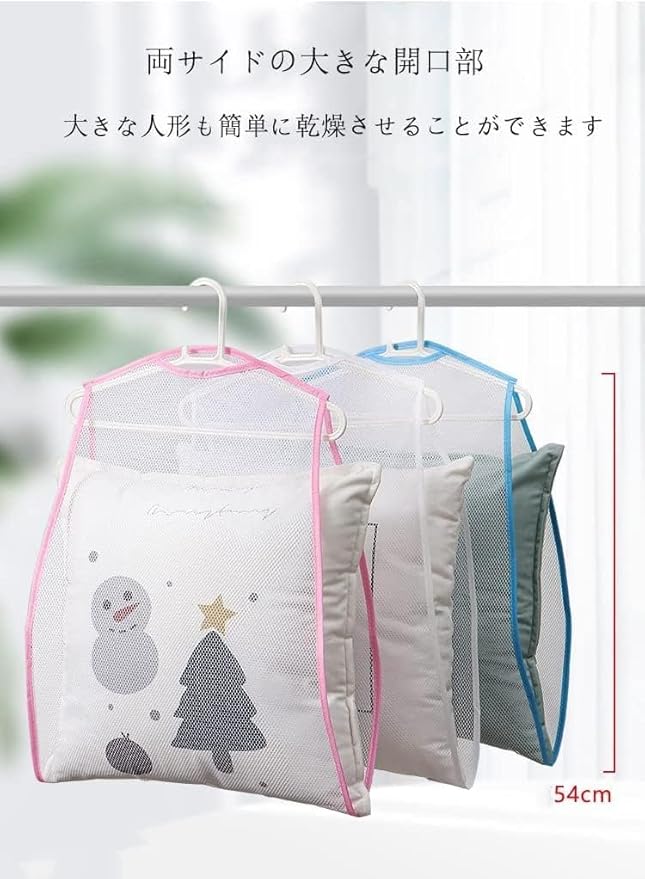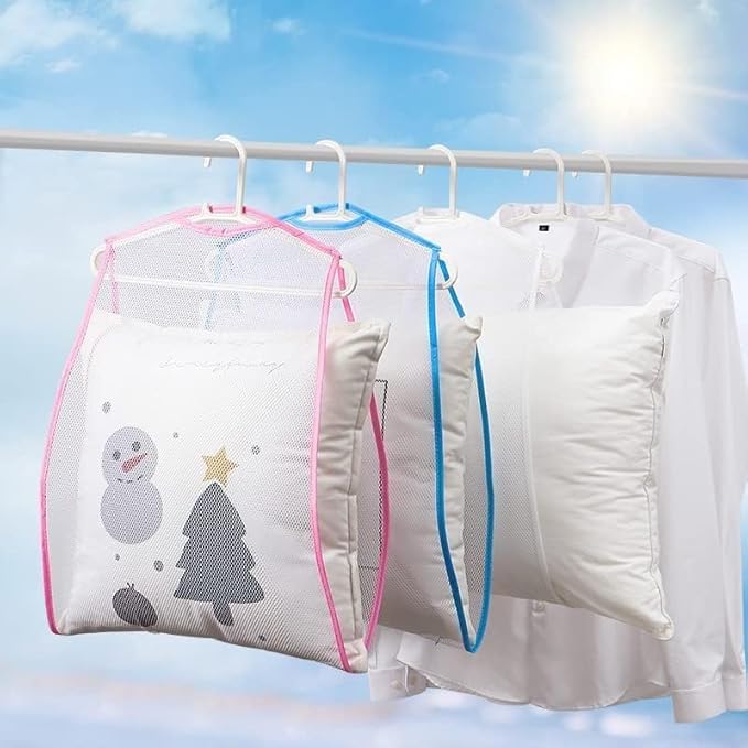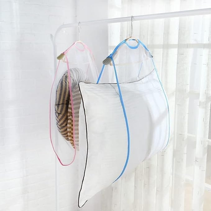 4本入り 枕干しネット まくら干し袋 洗濯干し 枕ほしハンガー 干しネット 洗濯干しハンガー 洗濯ハンガー 枕 干し ネットまくら クッション 座布団など物干し ネット 物干し掛け ハンガー 乾燥 (ブルー4枚) | oioioichan