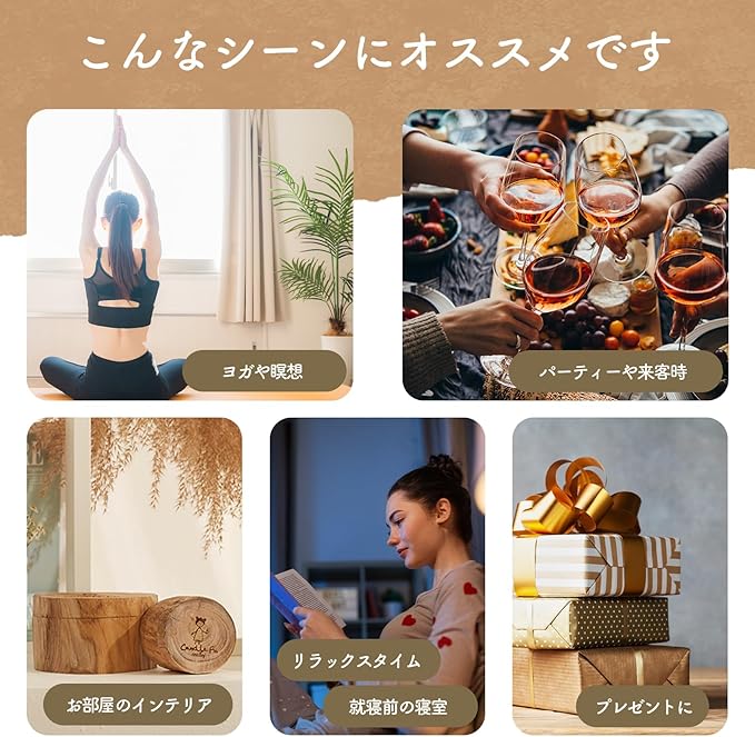 【■癒しの時間に】就寝前の安らぎたい時・休日のリラックスタイム・お子様やペットと過ごす時・ヨガや瞑想の時などに。おしゃれで優しい天然キャンドルとして、プレゼントやインテリアにも最適。