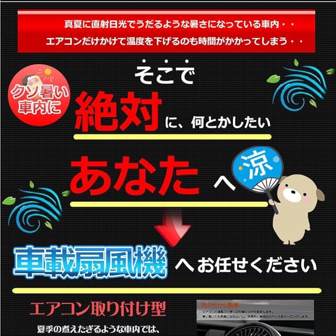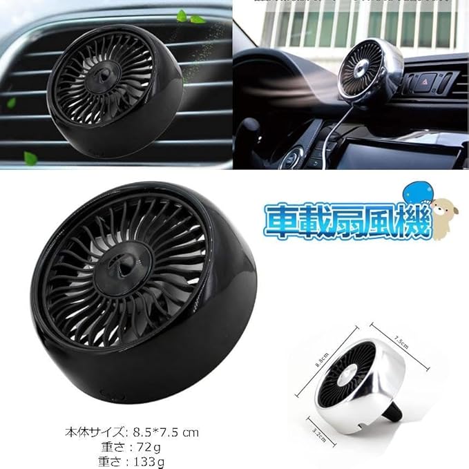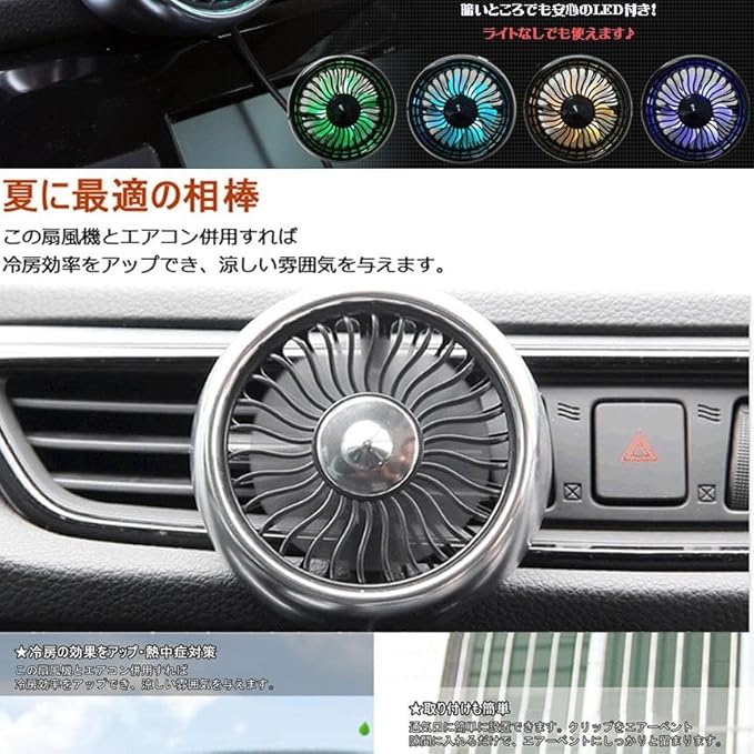 車内のエアコン吹き出し口に取り付けて風量UP!特に軽自動車は後部座席までエアコンの風が届かなくて暑い…なんて時も、このミニ扇風機が活躍!エアコンと一緒に使って暑さ対策を万全に!7枚の羽根で3段階の風量調節が可能!