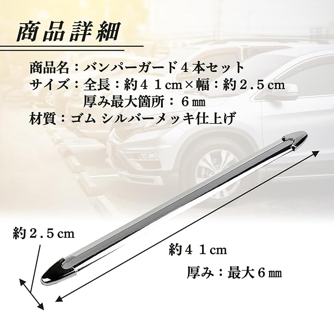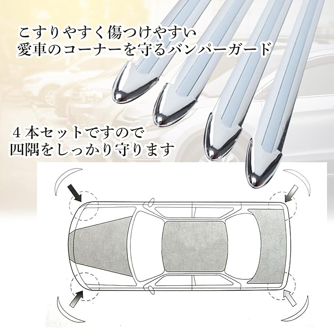 メッキモールをフロント、リアのバンパーのコーナーに取付る事によりお車の傷防止や、お車 傷隠しにお役立ちします。