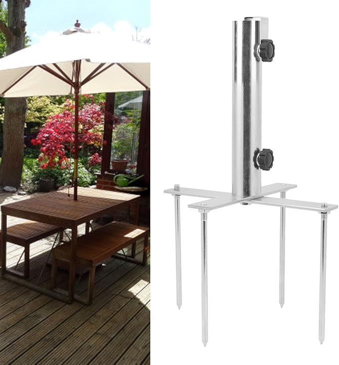 多用途:パティオ傘立ては、草、土、地面、裏庭、庭園、ピクニック、プールサイド、日よけ、その他の野外活動に最適です。ガーデンパラソル、パティオパラソル、ビーチパラソル、旗竿、電柱、回転式乾燥機、鳥の餌付けポールなどに最適です。