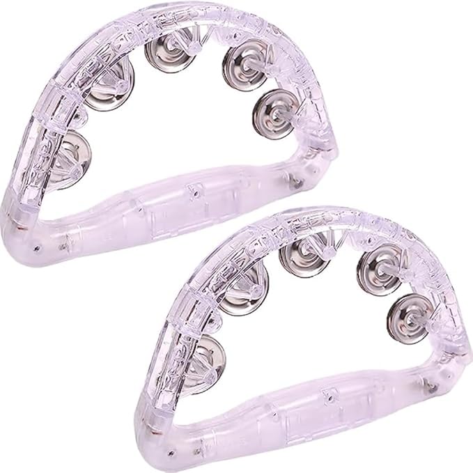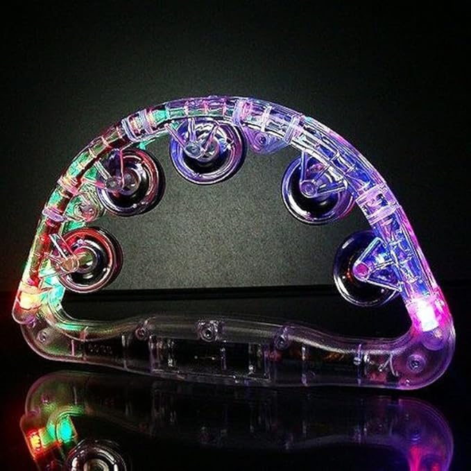 Jinmoioy 光るタンバリン LEDライト 1/2/3個セット 光る タンバリン カラオケ パーティー 盛り上げグッズ 楽器 おもちゃ レインボーカラー 半円型 (2個セット) | oioioichan