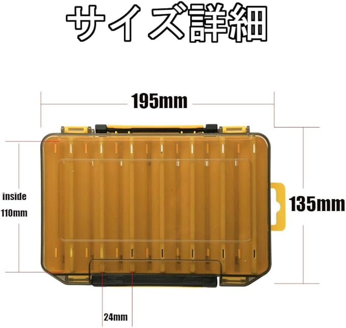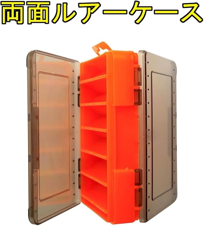 リバーシブル仕様で両面に最大14個のルアーやメタルジグ、ワームなどを収納できる釣具用のケースです。小ポケットを含めれば16個収納が可能。
