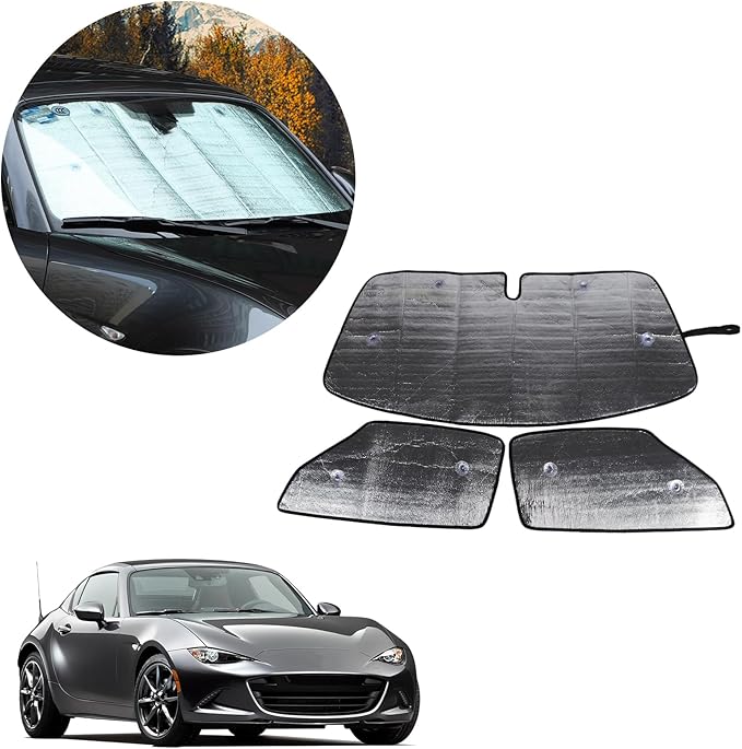 フロントガラス サンシェード マツダ MX-5 NC RF Miata 2016-2023対応 折り畳み式 車用サンシェード フロントウィンドウ用 自動車用サンシェード 紫外線カット 車内を涼しく保つ (3個) | oioioichan