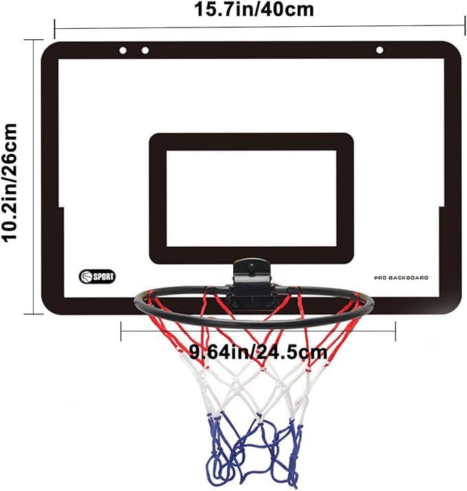 ♛適切なサイズ:ドア越しのバスケットボールフープは、約40 * 26cm / 15.7 * 10.2インチの適切なサイズで設計されており、省スペースで折りたたみ可能です。ミニバスケットボールの直径は11cm / 4.3インチで、子供用のグリップに適しています。