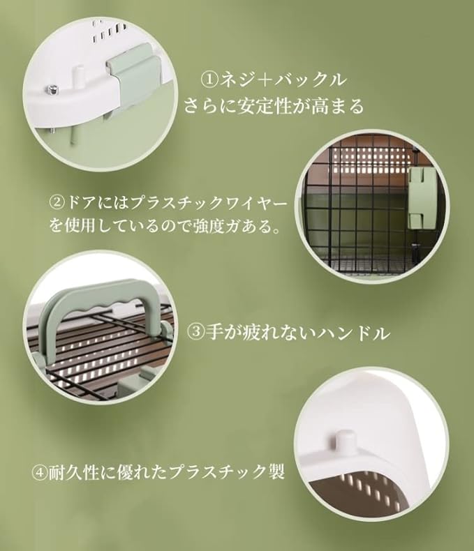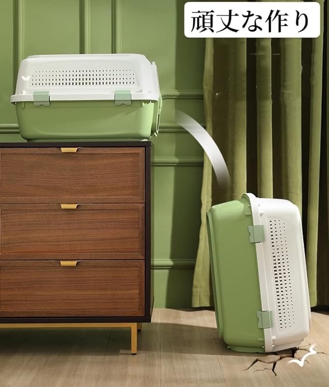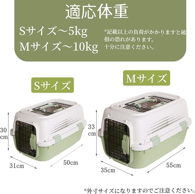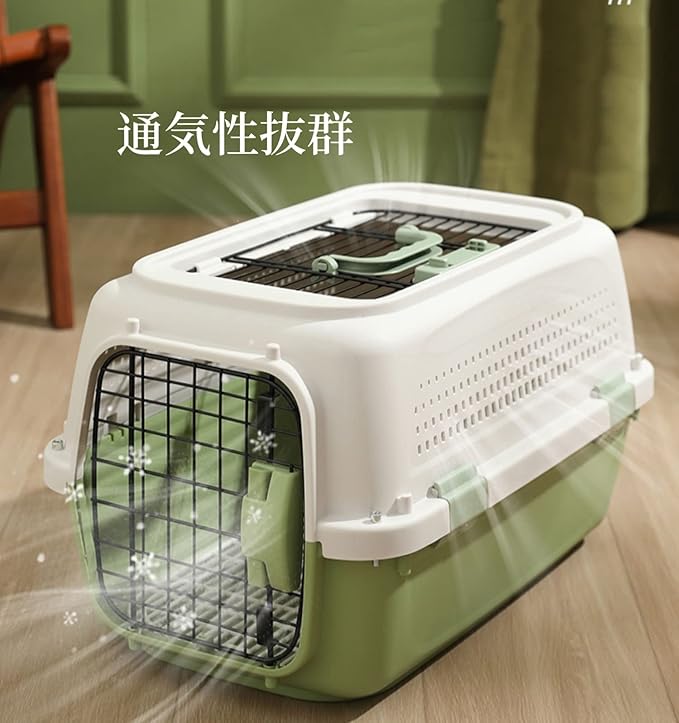 牧小苫\msmr ペット用キャリー ダブルドア ペットキャリーバッグ J10090-S 猫用・小型犬用・小動物用にも キャンピングキャリー ハードクレートSサイズ 航空機対応ペットキャリー (S, グリーン) | oioioichan