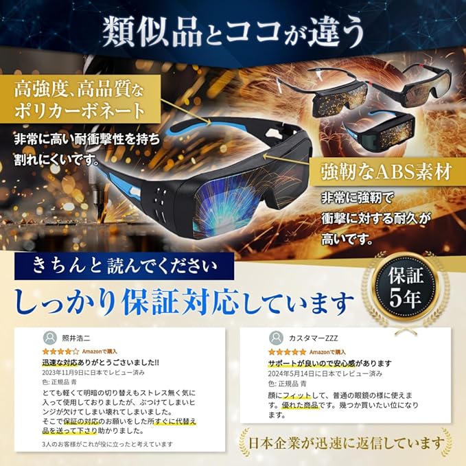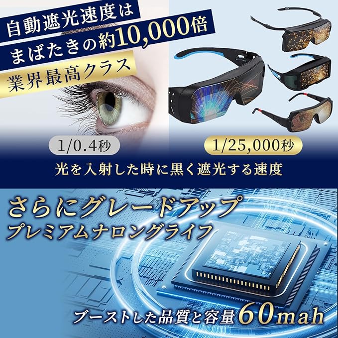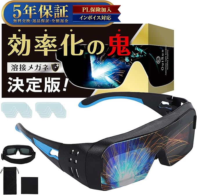 [OutRun] 【2025年 新型モデル】 溶接メガネ 溶接面 自動遮光 溶接 超軽量【日本企業】ソーラーパワー 溶接ヘルメット 溶接 (超高速 1/25,000秒)正規品 (青) | oioioichan