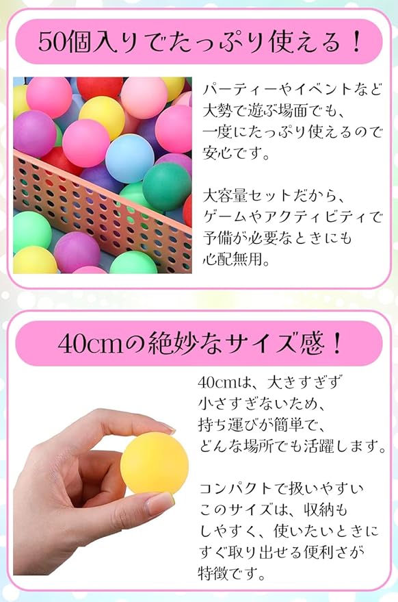 【イベント向けアイテム】イルミネーションやゲームに最適!カラフルなピンポン玉で盛り上がること間違いなし。