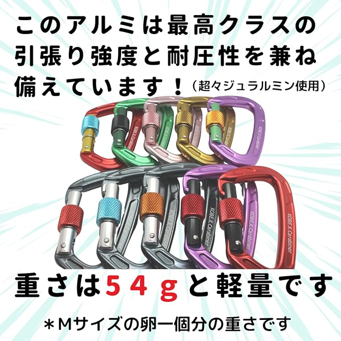 ・カラビナ専門店 神戸輝き 日本製 CE認証 破断強度 2400kg(24kN) 国内テスト済 アルミ素材 重さ54g スクリューゲート(金具をくるくる回すタイプ) 2個セット | oioioichan