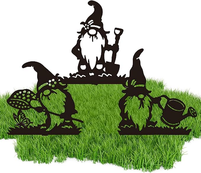 ⋫楽しくて鮮やか: 金属製のシルエットの庭のノームの植物の杭は、庭、芝生、花壇、パティオ、鉢、バルコニーの素晴らしい装飾です。