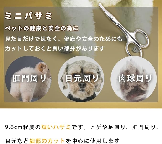 【顔や手足のお手入れミニハサミ】余分な被毛をカットすることで、もつれにくくします。顔周りや足裏など細かな部分のカットにミニサイズのハサミです。【顔や手足のお手入れミニハサミ】余分な被毛をカットすることで、もつれにくくします。顔周りや足裏など細かな部分のカットにミニサイズのハサミです。
