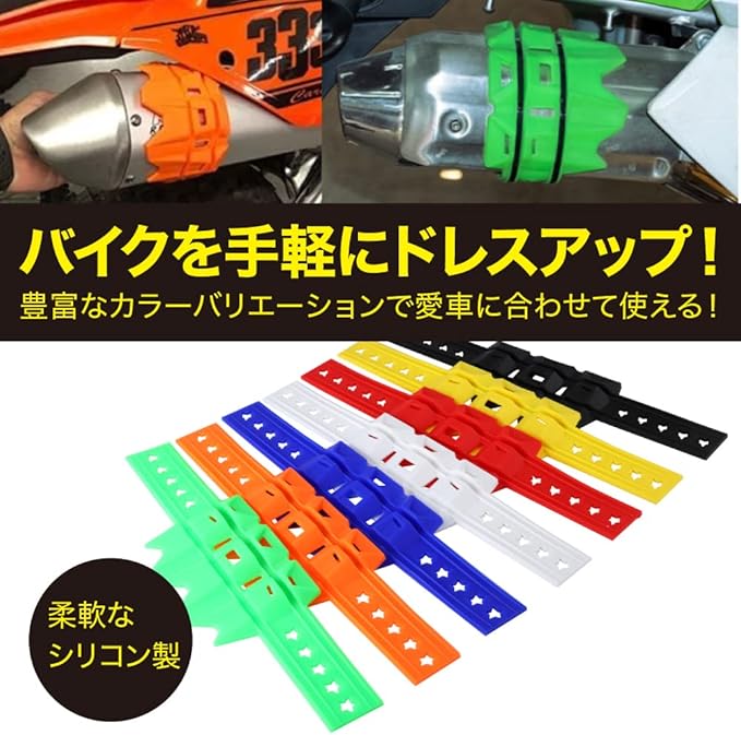 【柔らかなシリコン製】本体はシリコンでできているため、接触時の衝撃を吸収し傷付きを防止します。また、マフラーの形状に合わせて取り付けができ熱にも強くなっております。
