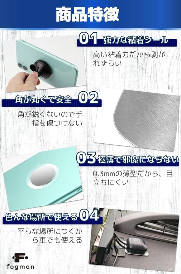 【好きな場所に貼れる】 片面にはマグネット吸着が可能なステンレス、 もう一方はとっても強力な粘着テープ仕様となっているので、くっつけた際に、剥がれたりずれ落ちる心配なくご使用いただけます。