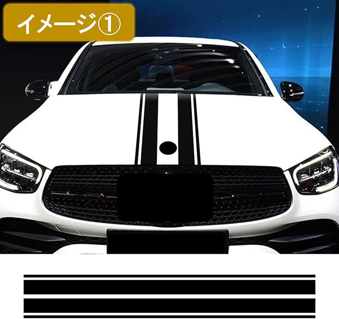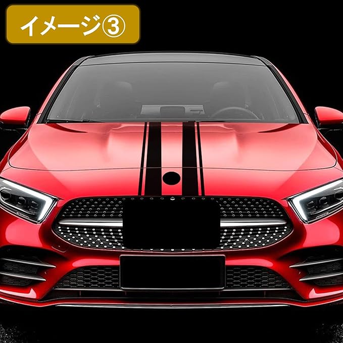 お好みに合わせてカスタマイズしてください。横幅を太めにしてボンネットのセンターに貼ったり、そのまま左右対象に1本ずつ貼ったりと好みと愛車の特徴に合わせて加工してください。汎用タイプのステッカーですので、国産車から外車まで幅広い車種に適したボンネット ステッカーです。