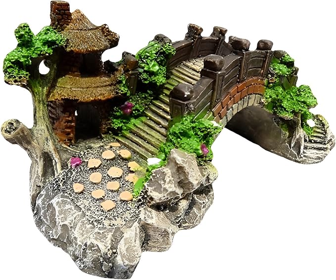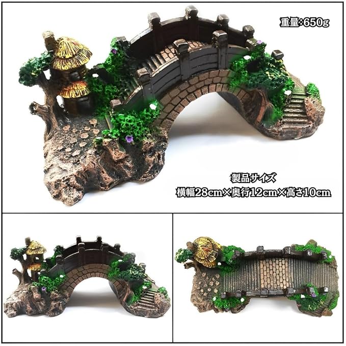 【リアル感漂うおしゃれなオーナメント】日本庭園などで見られるアーチ状の橋をモチーフにした高級感のあるアクアリウムオーナメントです。独自の塗装技術により、本物のようなリアル感漂う質感と色合いを再現しております。アンティーク感のある、おしゃれな水槽レイアウトの演出に最適です。