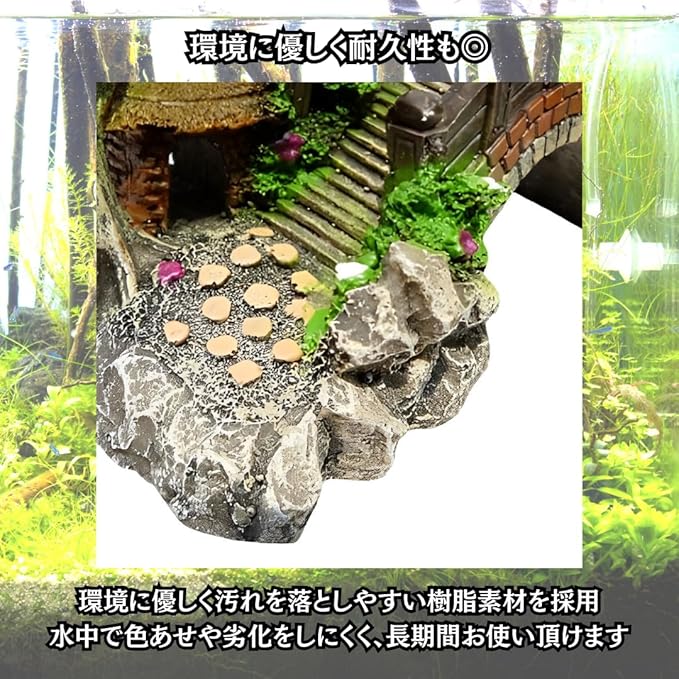 【環境に優しく耐久性も抜群】淡水・海水どちらでも使用可能な、無毒で環境に優しい樹脂素材を採用しております。汚れも落としやすく、お手入れも簡単です。高品質で丈夫な素材ですので、水槽内でも色あせや劣化をしにくく、長期間お使い頂けます。