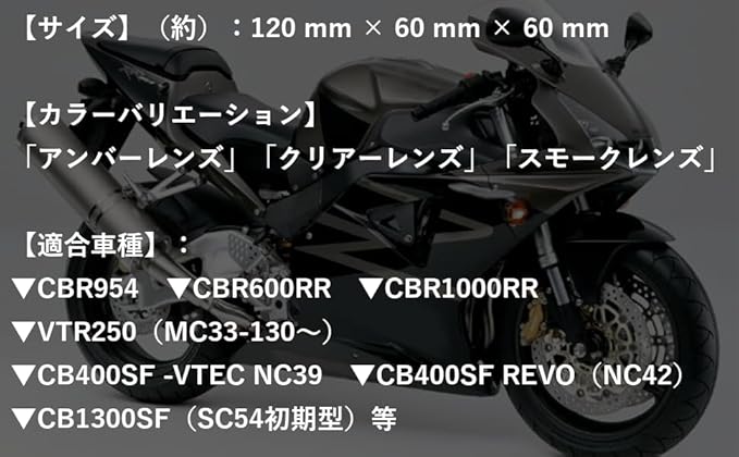 【適合車種】:▼CBR954 ▼CBR600RR ▼CBR1000RR ▼VTR250(MC33-130~) ▼CB400SF -VTEC NC39 ▼CB400SF REVO(NC42) ▼CB1300SF(SC54初期型)等