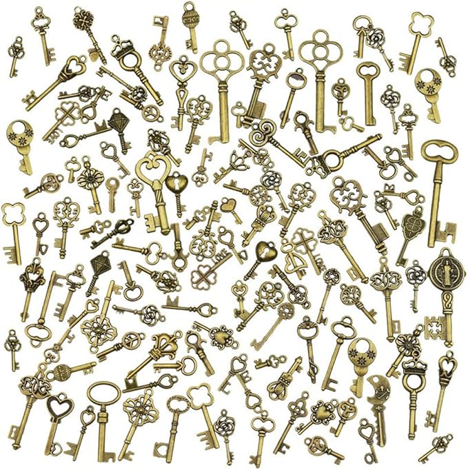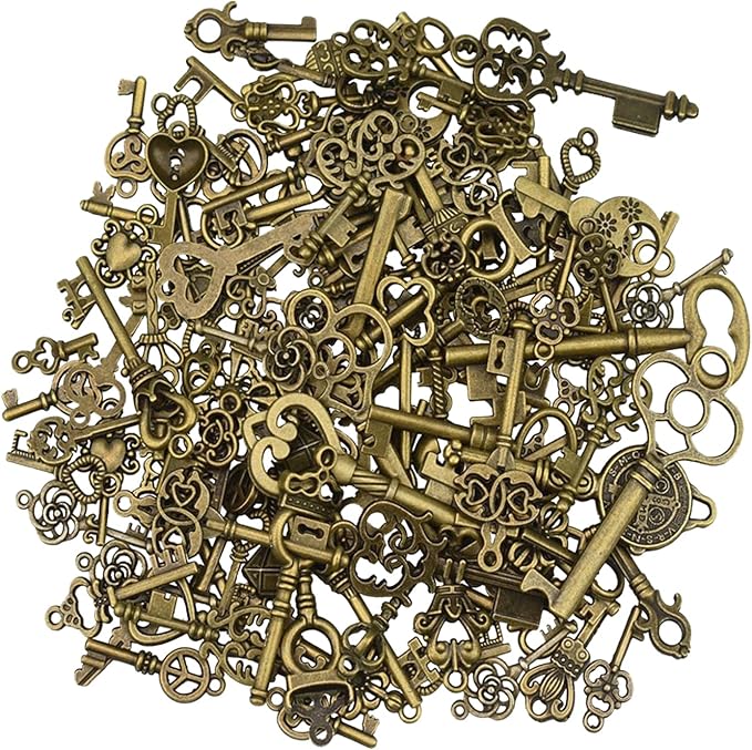 キー チャーム 約125個 鍵 ブロンズ 青銅色 ハンドメイド DIY手作りアクセサリー アンティーク チャームパーツ メタルチャーム 金属 刺繍入り 古い鍵 写真摄影 宝探し 人気 | oioioichan