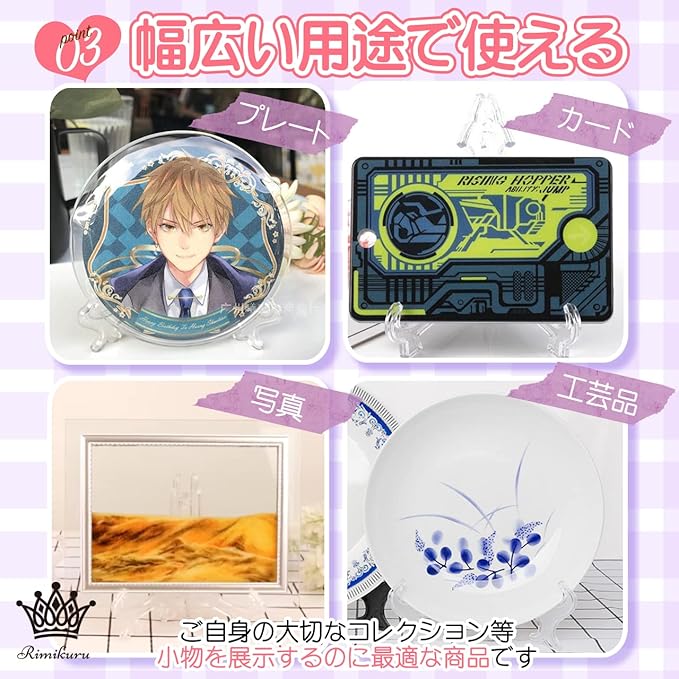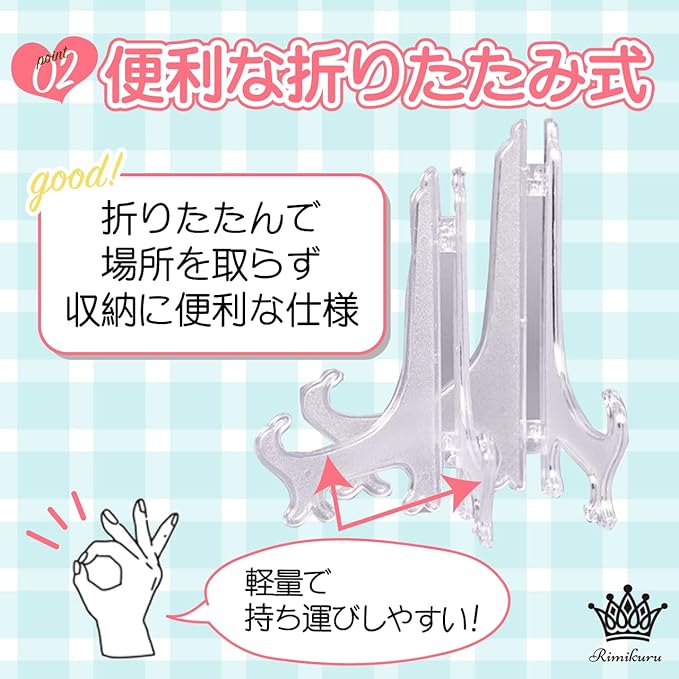 便利な折りたたみ式:折り畳み式を採用したアクリル ディスプレイスタンドなので、使わない時は折りたたんで場所を取らず収納に便利な仕様になっております。また、軽量なので持ち運びもしやすいです。