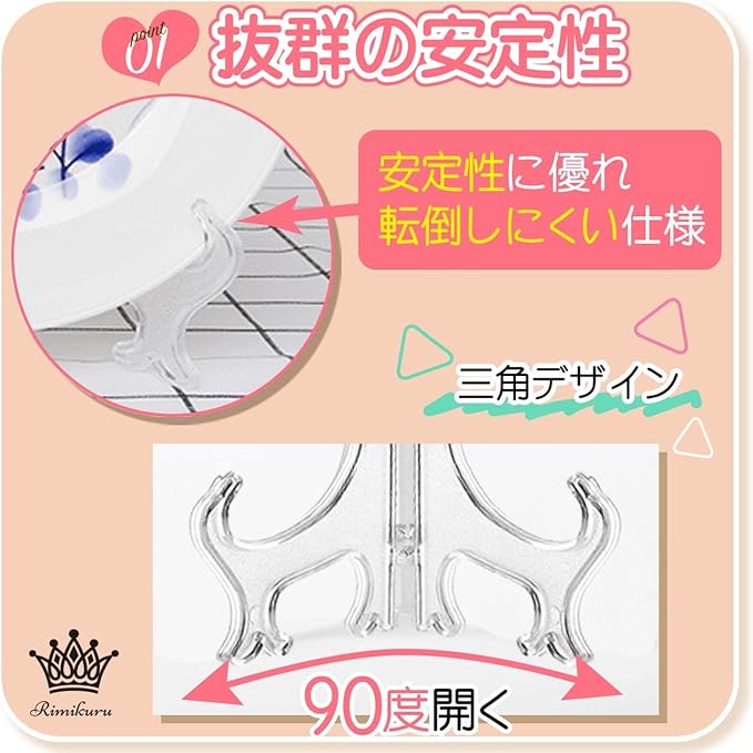 抜群の安定性:こちらのディスプレイスタンドは90度開く三角デザインを採用しているので、安定性に優れ転倒しにくい仕様です。また、両サイドがフック形状になっているので、展示しているコレクションをしっかりと掴み、滑らないようにします。