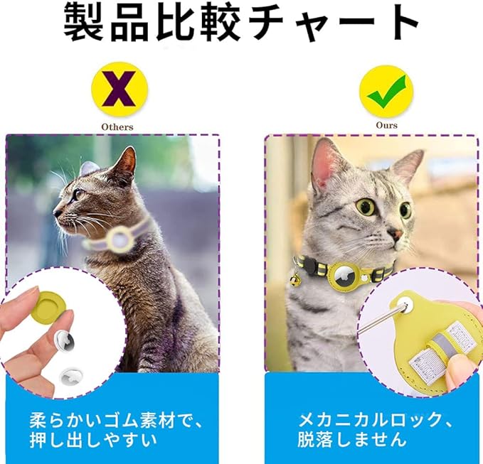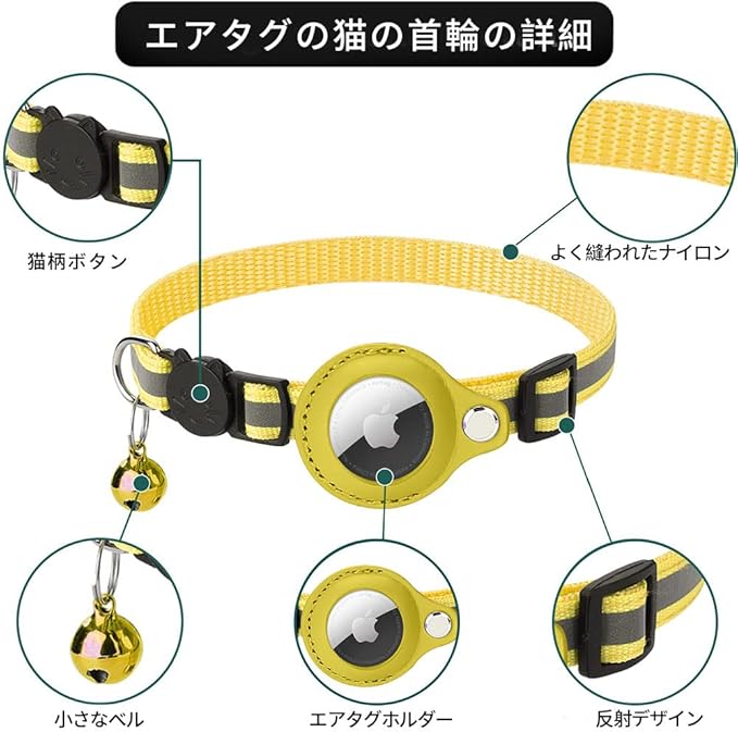 Airtag gpsペット 追跡装置 エアタグ 首輪 猫用首輪 安全首輪 犬 猫用首輪猫 首輪スマホ対応 首輪猫 首輪 gpsペット 頑丈耐用です そして 光反射のデザインを加えて 紛失防止(IOSのみ対応できます)注意:商品にはairtagは含まれておらず、airtagは自分で購入する必要があります。 | oioioichan
