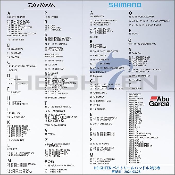 【適応機種】取付部4x7mm、5x8mmのDAIWA, SHIMANO, ABU GARCIAのベイトリールに適用。
