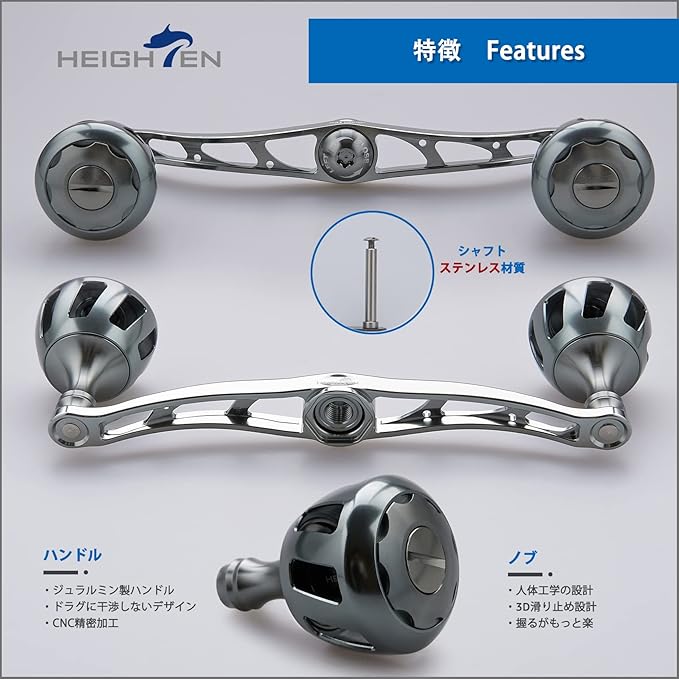 HEIGHTEN 130/120mm リール ハンドル 32mmノブ搭載 シマノ ダイワ アブガルシア 通用 ベイトリール 用 Wheel Series