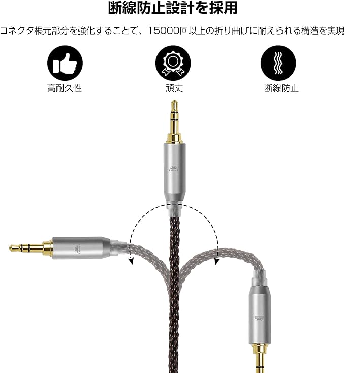 【断線防止設計を採用】コネクタ根元部分を強化することで、15000回以上の折り曲げに耐えられる構造を実現。