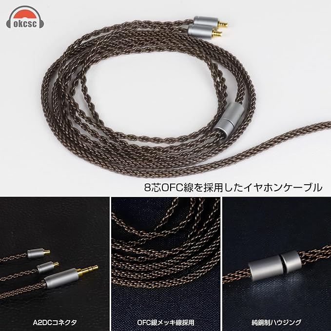 okcsc ZT8 リケーブル A2DC ケーブル イヤホンケーブル 8芯 純銅 オーディオテクニカ用 ATH-CKS1100・ATH-CKR100・ATH-CKR90など適合 4.4mm | oioioichan