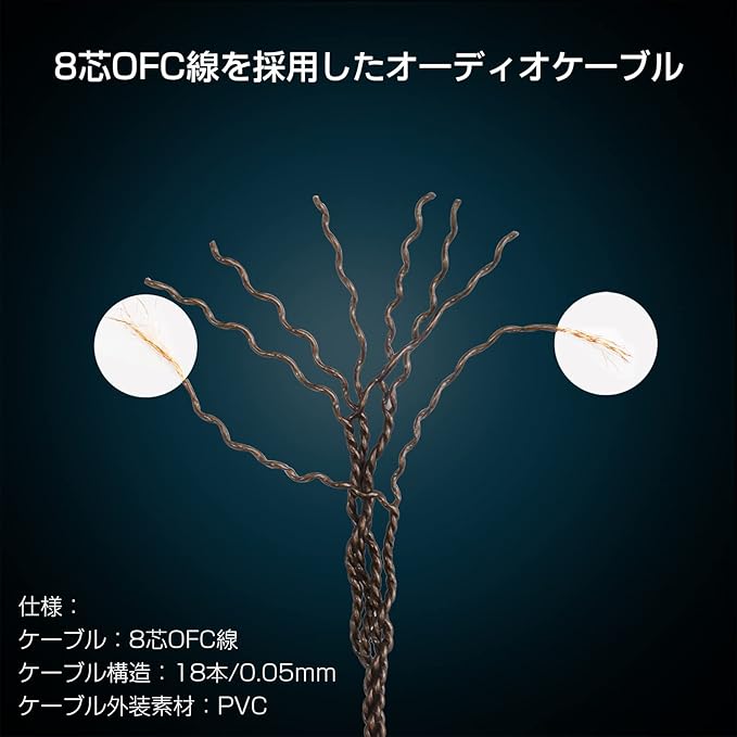 【クリアな音質を実現する】1芯あたりに高純度無酸素銅(OFC)を18本使用することで、音声信号の伝達における抵抗を排除し、クリアな音質を実現しました。また、8芯構成でケーブルの強度を高めるだけでなく、広いレンジ感を維持し、自然でありながらも空間表現力を向上します。