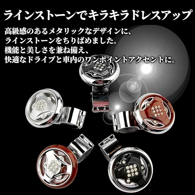 【ラインストーンでキラキラドレスアップ】高級感のあるメタリックなデザインに、ラインストーンをちりばめました。機能と美しさを兼ね備え、快適なドライブと車内のワンポイントアクセントに。