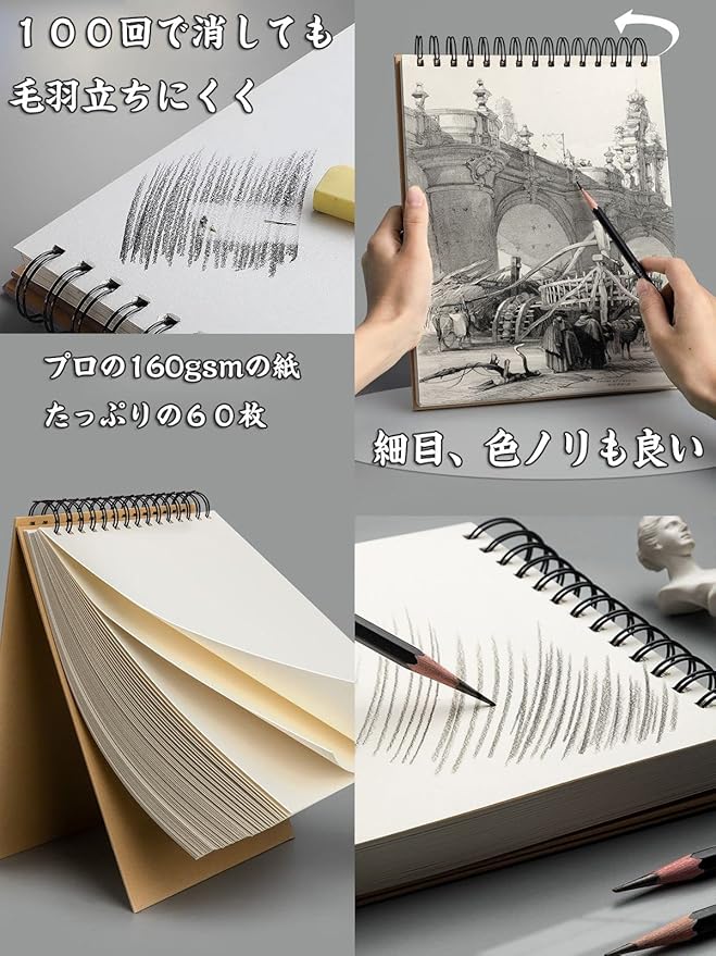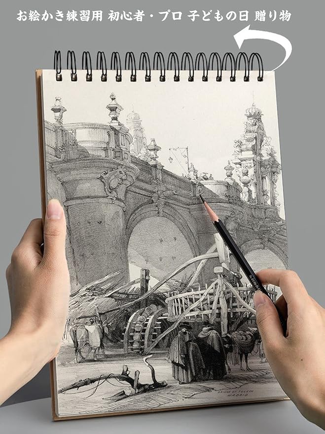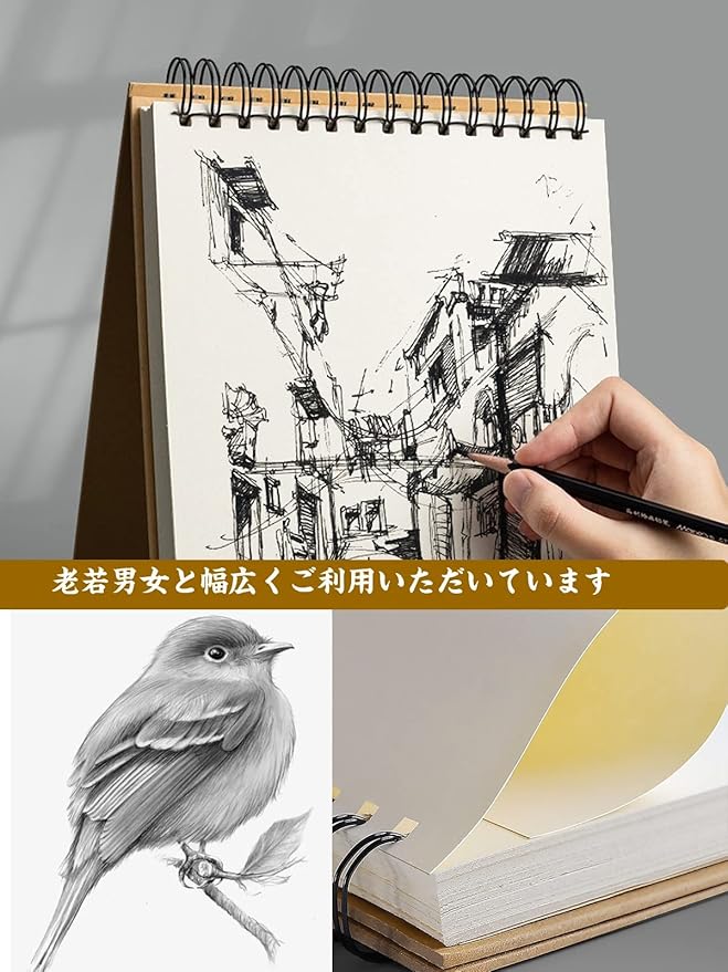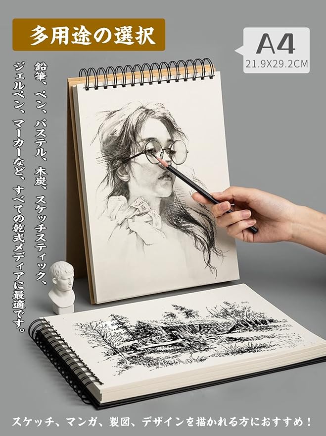 【様々な利用シーン】-家と学校ではもちろん、旅行と野外スケッチでも幅広くお使い頂けるスケッチブックです。デッサン、漫画やデザインなど興味を持っている方にも素敵なプレゼントになれます。この描画ノートは、すべてのスキルレベルの初心者とプロが描画スキルを学び、開発するために使用できます。完璧な贈り物になることができます