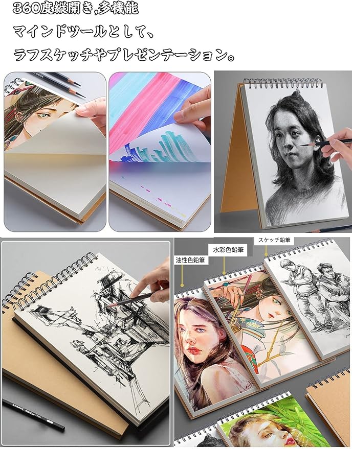 【保護カバー付きコンパクトサイズ】私たちのアートノートブックは持ち運びに便利で、ほとんどすべての種類のバックパックに簡単に収納できます。お絵かき帳として、スケッチの練習、クロッキーの描き、趣味のイラストには最適で、仕事のノートや頭の整理の為マインドツールとして、メモの取り、構図案の練り、考えのまとめにも適しています。