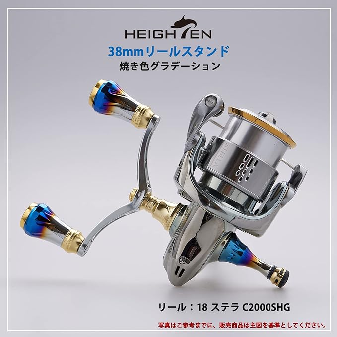 【特徴】2000番及び以下スピニングリール対応38mmリールスタンド、表面焼き色グラデーションで高級感満々、フックキーパー取り付け/外すことができる。