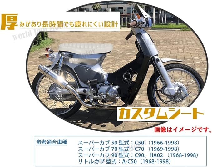 スーパーカブ 50 型式:C50 (1966-1998) スーパーカブ 70 型式:C70 (1969-1998) スーパーカブ 90 型式:C90、HA02 (1968-1998) リトルカブ 型式:A-C50(1968-1998) ※ 形状 や サイズ をご確認の上 ご購入下さい。