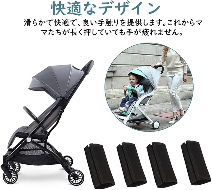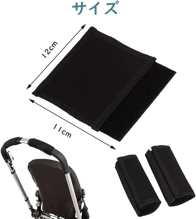 【商品仕様】パッケージ内容:ベビーカーハンドルカバー 4個入り サイズ:長さ 12.5cm*幅11cm 色:ブラック
