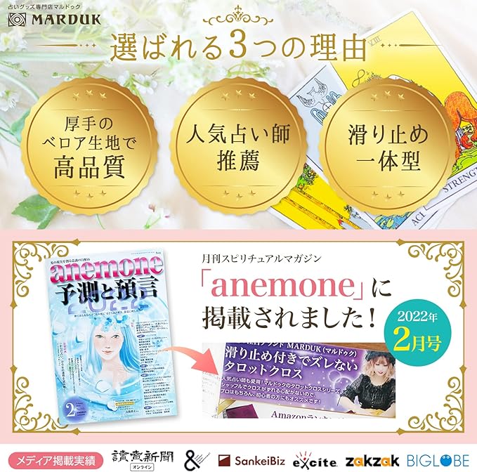 ✅【anemone2022年2月号掲載】 占いグッズ 専門店 (マルドゥク)が スピリチュアル & ヒーリング マガジン anemone に取り上げられました。ブランドの紹介、そして タロットクロス や クリスタルチューナー などを特集して頂きました。