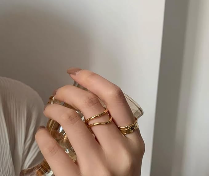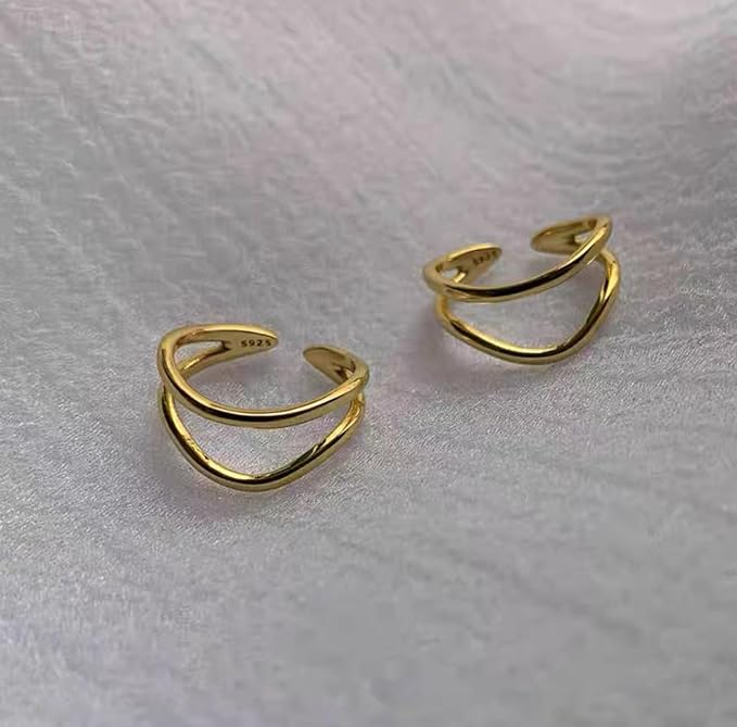[Iris Apricot] レイヤードリング K18 18金コーティング シルバー925 レディース メンズ 指輪 人気 シルバーリング ゴールド プラチナ フリーサイズ 金属アレルギー対応 本物ジュエリー | oioioichan