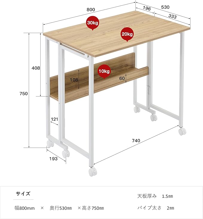 SYALEN 折りたたみデスク テレワークデスク 幅80 奥行53 高さ75cm 省スペース 多機能テーブル 机 コンパクデスク メラミン加工 木製 モニターアーム取付対応 ナチュラルウォルナット/白 SLDK-01NA80A | oioioichan