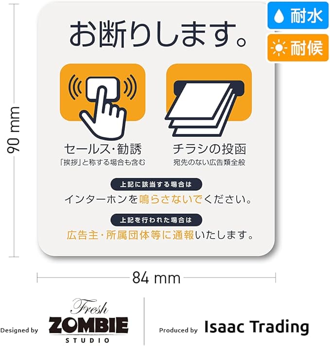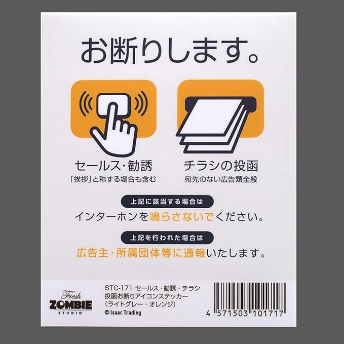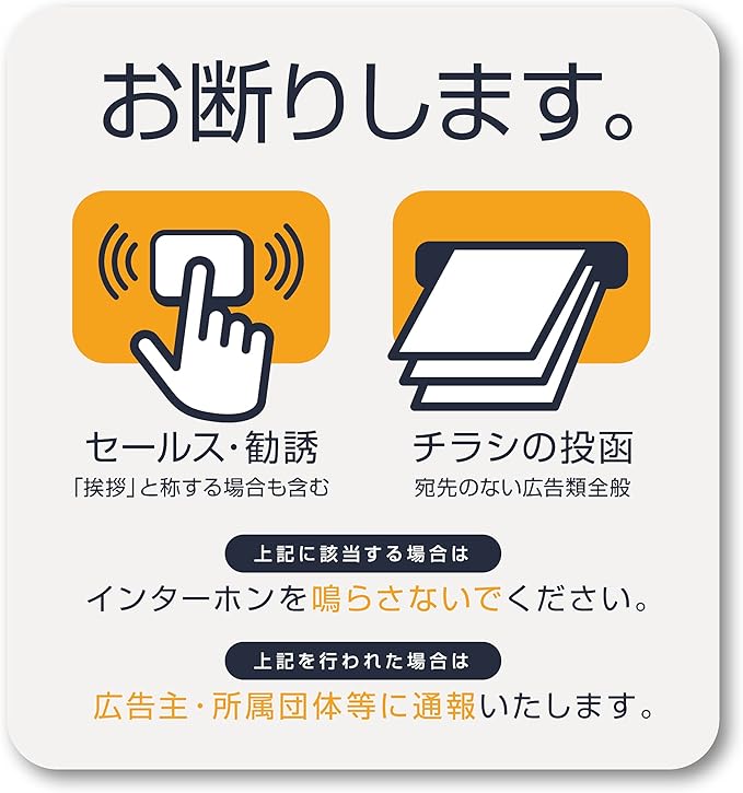 アイコン入りできっぱりアピール。セールス・勧誘・チラシお断りステッカーです。