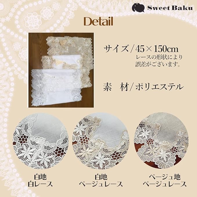 【サイズ】45 150㎝(レースの形状により誤差があります)